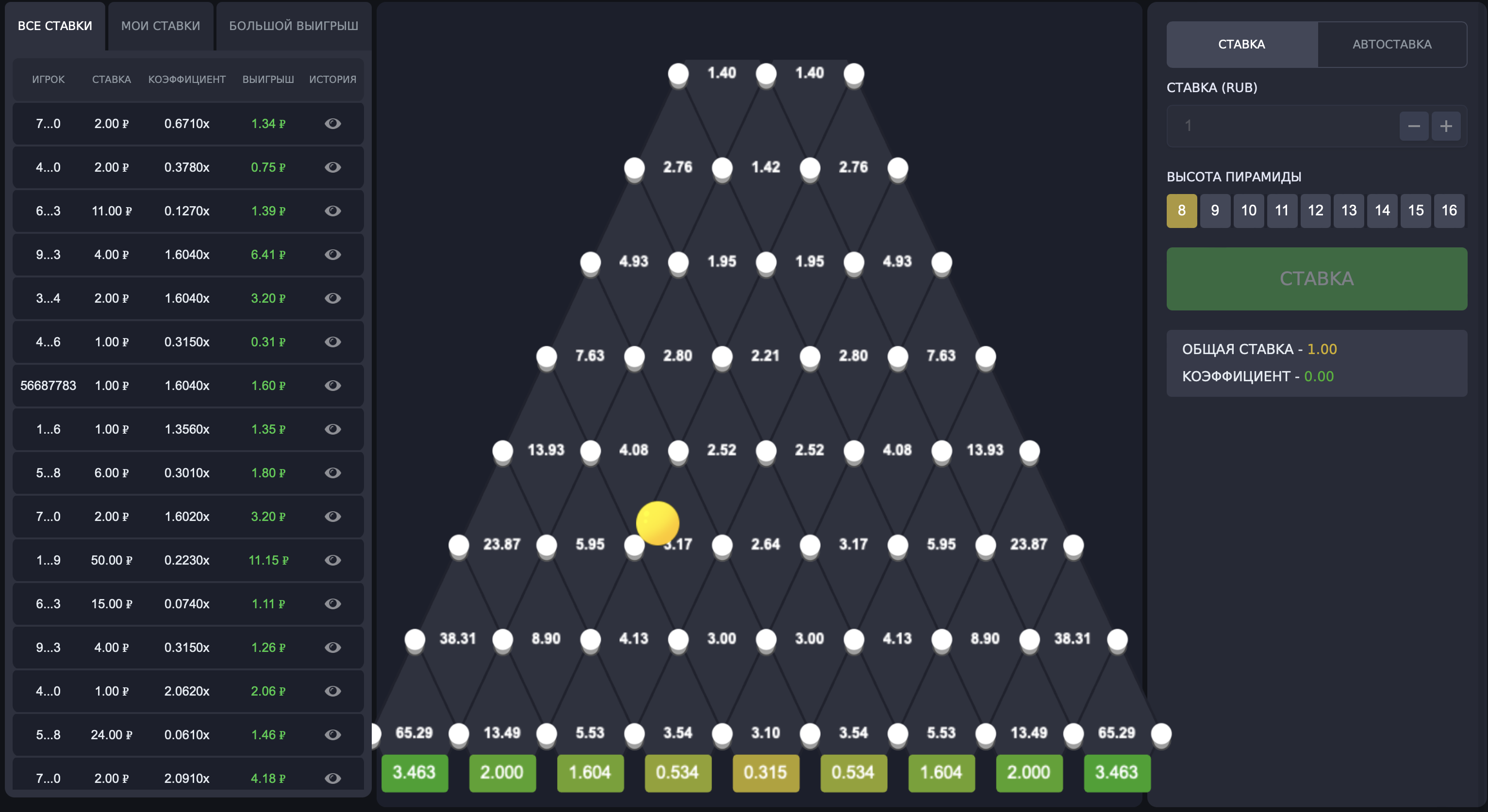 Hər şeydən əvvəl, oyunçunun özü oyunun bütün tələb olunan parametrlərini təyin edə bilməsi. Topun yolunda maneələrin səviyyəsi nə qədər çox olarsa, risk dərəcəsi nə qədər yüksək olarsa, bir o qədər çətindir. Amma oyunçuya yox, topa. Daha uzun düşəcək, əla əmsalı olan bir hüceyrənin “seçilməsi” ehtimalı artır. Lakin bu, artım və müvafiq riski göstərir. Sonuncunu istisna etmək, ən azı itirmək ehtimalını azaltmaq istəyirsinizsə, əsas parametrləri seçə bilərsiniz.