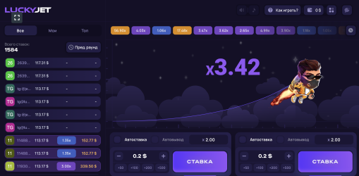 «Lucky Jet» – салыстырмалы түрде жаңа, бірақ қазірдің өзінде өте танымал құмар ойыны. Басты кейіпкер – маска киген және реактивті көзілдірік киген қатыгез адам. Әрбір жаңа ойын раунды ұшудан басталады. Ер адам биіктейді. Сонымен қатар коэффициент деңгейі жоғарылайды. Ойыншының міндеті – өз уақытында өзін жинау. Әр раундты орындау әрқашан қажет емес: арнайы функцияларды пайдалануға болады. Тағы бір маңызды нәрсе: басты кейіпкер ойын алаңынан ұшып кеткенге дейін жинақталған коэффициенту көбейтілген ақшаны алу керек.