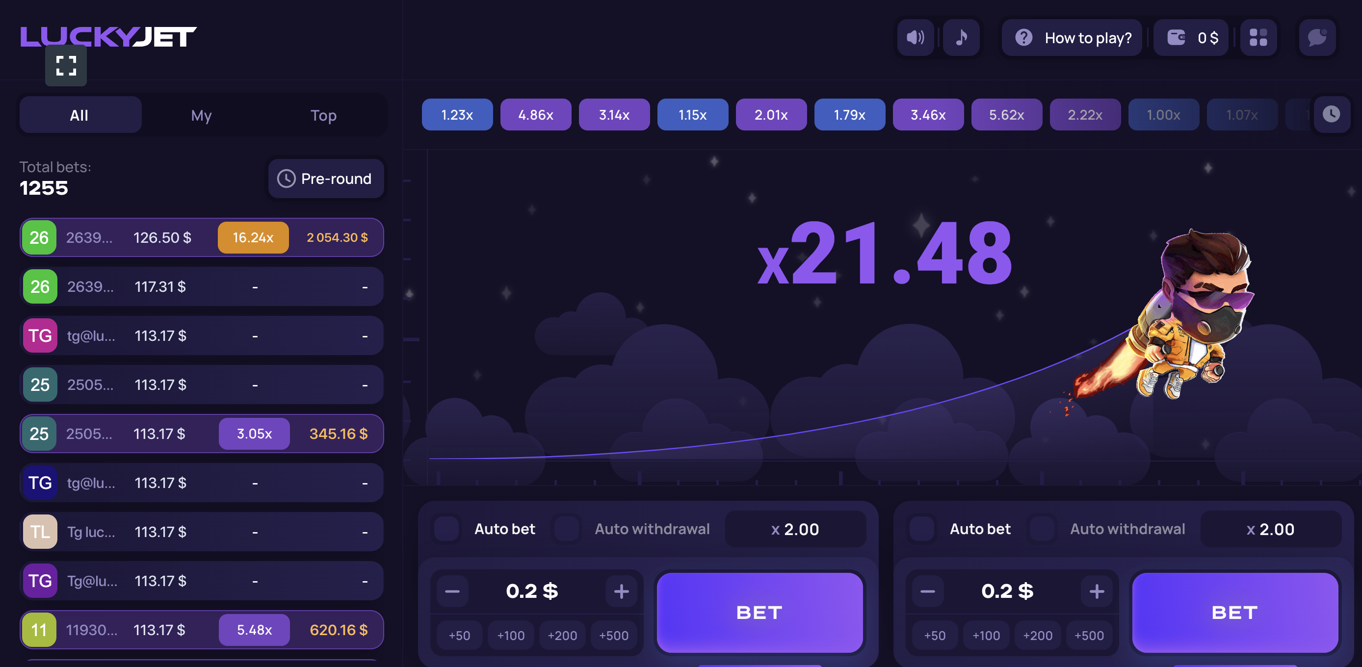 Lucky Jet’i gerçek parayla oynamaya başlamak ve kazanmak için, beğendiğiniz çevrimiçi kumarhaneye kaydolmanız gerekir. Bundan sonra oyun uygulamasını başlatabilirsiniz. İlk bahsi yapmak için oyun bakiyesini yenilemeniz gerekecek. Lucky Jet basit ve sindirilebilir bir oyundur. Zorluklar hariçtir. Bu, arayüzün basitliği ve niteliğinden kaynaklanmaktadır. Geliştirici, rahat bir oyun için ihtiyacınız olan her şeyi düşündü ve uyguladı.